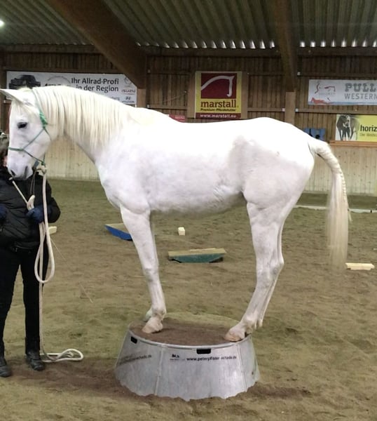 Zahur lives in a small herd in an open stable, but also knows boxes and paddocks with neighbors as well as from training courses (circus lessons, liberty dressage) or vacations (North Sea). He is very easy-going and not fussy, although he prefers a pure "male herd" to a mixed-gender herd. He is a very fine horse that responds well to leg and weight aids, so he needs an experienced rider with a very good feel, not a beginner. Not a children's horse. He is not a weight carrier due to his build. He is not a jumping horse, except for jumps over cavaletti for gymnastics. He is not an endurance horse as he lacks ambition and willingness to run. He is predominantly barehoof, but wears hoof boots in the field. He is skittish in the field, but with enough time to get used to it he will get over it. Regularly wormed and vaccinated, dental check every 1-2 years. Place before price, no horse dealers, horse transport can be taken over for a fee (transport license for horses available) as well as the saddle adapted to him (ROC Race) can be purchased.