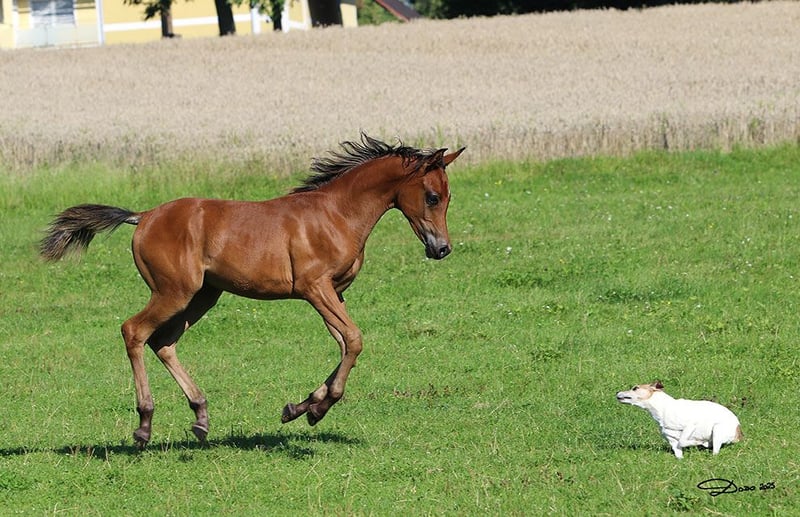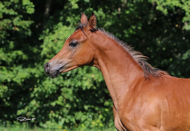 A stylish brown colt "HAG-Jamiro", born 03/2025, Sire: Juwelo O (Russian/Egyptian), Dam: Wasima von Eryks (Polish). Jamiro has a very athletic, correct build for a future sport or leisure horse. He lives in a paddock, has been dewormed multiple times, will be vaccinated before weaning, and has VVÖ papers. His parents are ridden. If you are interested or need further information, I am happy to assist you. Don’t miss this opportunity to welcome an exceptional purebred Arabian into your family! Just come and take a look. Price negotiable.