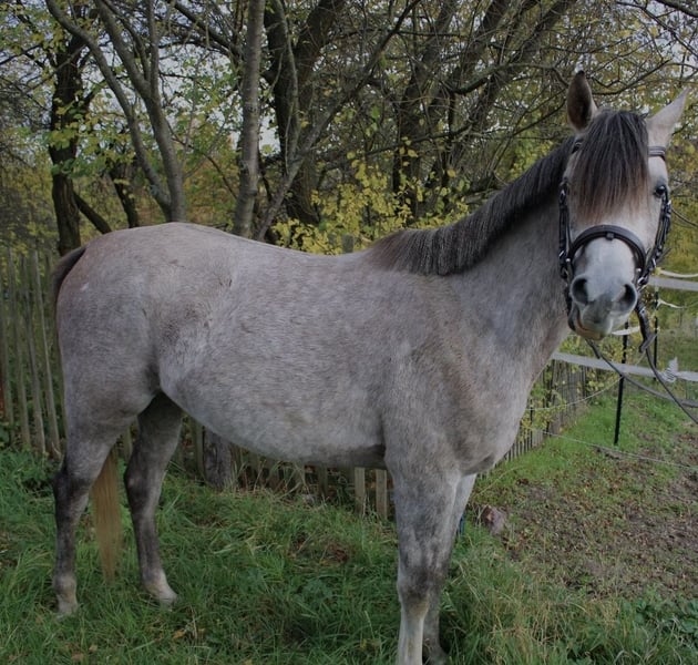 Biete hier einen tollen Wallach mit vollen Papieren an. Im Pass “Experior”, von mir “Kleiner Donner” getauft, besticht besonders unter dem Reiter durch seine Lernbereitschaft und seinem angenehmen Charakter. Im Umgang ist er grundsätzlich unproblematisch, etwas sensibel und skeptisch bei Fremden am Anfang, dies aber immer im Rahmen. Er braucht eine ruhige und geduldige Person, welche ihm Mut geben kann. Kleiner Donner ist ein junges Pferd, welches für seine 3 1/2 Jahre schon einen sehr ausgeprägten Verstand hat. Er ist in allen 3 Gangarten (über Stimme und ohne Gerte und Sporen) auf dem Platz und im Gelände geritten und somit bereit für die weitere Ausbildung. Kleiner Donner bietet ab und zu schon die Anlehnung an, jedoch fehlt ihm aufgrund seines Alters noch der nötige Takt, das Gleichgewicht und der Schub aus der Hinterhand, um diese richtig zu halten. Im Gelände zeigt er sich, egal ob in der Gruppe oder alleine, stets motiviert und unerschrocken. Außerdem ist er straßensicher, entspannt bei Kühen sowie anderen Pferden und auch Hunde, Katzen und kleine Kinder sind kein Problem für ihn. Kleiner Donner bringt das gewünschte Go mit (er ist also nicht triebig), lässt sich dabei aber immer händeln. Unarten wie beißen, treten, steigen, buckeln oder durchgehen hat er noch nie gezeigt. Deutliches Interesse hat er beim Freispringen vorzuweisen. Dort sprang er mit sehr viel Leidenschaft und Potenzial eine beachtliche Höhe von 125cm, deswegen kann ich ihn mir später gut im Springsport vorstellen. Trotz dessen, dass er brav ist, ist er kein Pferd für Anfänger sondern für jemanden der weiß was er tut und ihm Sicherheit geben kann. In den nächsten Tagen wird sich nochmal ein Fremdreiter welcher gleichzeitig auch Anfänger ist, auf ihn setzen, damit ich weiß, dass er sich auch in dieser Situation brav verhält. Gerne kann davon dann auch ein Video gesendet werden. Er ist Barhufer und wurde auch schon von der Ostheo untersucht. Der Hufschmied besucht ihn regelmäßig, dies macht Kleiner Donner auch brav mit, jedoch muss immer eine vertraute Person dabei sein, welche die Hufe hält, ansonsten wird er unruhig, dieses Verhalten wird jedoch bei weiterem Training auch besser. In der Herde ist er rang niedrig und stand bisher mit Stuten, Wallachen und Hengsten gleichermaßen gut zusammen. Verladen lässt er sich problemlos. Weitere Videos und Bilder können auf Wunsch gerne gesendet werden. Seine Trense, Abschwitzdecke, Gamaschen, Halfter + Strick und Transportgamaschen können auf Wunsch bei einem Kauf ohne zusätzliche Kosten übernommen werden. Ich möchte den Verkauf fair und transparent gestalten, deswegen gibt es bei ernsthaftem Interesse per Nachricht weitere Infos.