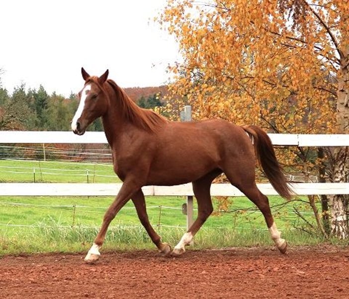 Jazz ist nicht nur ein wunderschöner junger Araber mit einer charmanten Persönlichkeit, sondern aufgrund seiner hervorragenden Abstammung (Persik) ist er geradezu prädestiniert für den Distanzsport. Er braucht bei neuen Menschen etwas Zeit bis er sich vollständig öffnet, hat er aber einmal Vertrauen gefasst ist er 100% cool und absolut zuverlässig. Er wurde sehr spät eingeritten, so hatte er genügend Zeit körperlich und mental zu reifen. Aktuell wird er überwiegend im Gelände geritten und daran hat er auch am meisten FreudeJ in Frankreich ist er im Herbst bereits einen kleinen Distanzritt gelaufen den er mit den besten Pulswerten aller Starter abgeschlossen hat. Er ist auf riesigen, bergigen Weiden in einer großen Herde aufgewachsen und ist natürlich bestens sozialisiert. Ärger geht er lieber aus dem Weg freut sich aber immer wenn er zum spielen aufgefordert wird. Jazz befindet sich aktuell in Beritt, der Preis wird mit der weiteren Ausbildung steigen Wer also auf der Suche nach einem korrekten, außergewöhnlichen, unkomplizierten und sportlichen Araber ist sollte nicht lange zögern:)