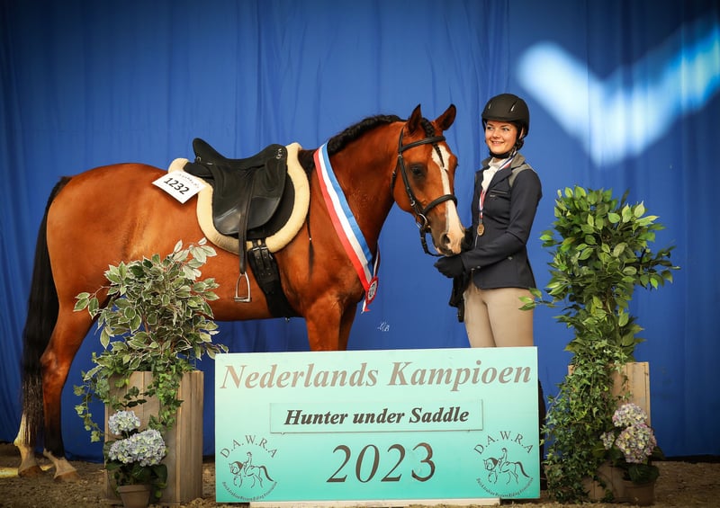 𝗬𝗮𝗵’𝗿𝗶 𝗡𝗮𝗱𝗶𝗺 – 𝗯𝗲𝘄𝗲𝘇𝗲𝗻 𝗮𝗹𝗹𝗿𝗼𝘂𝗻𝗱 𝗸𝗮𝗺𝗽𝗶𝗼𝗲𝗻 𝗺𝗲𝘁 𝘂𝗶𝘁𝘇𝗼𝗻𝗱𝗲𝗿𝗹𝗶𝗷𝗸𝗲 𝗽𝗿𝗲𝘀𝘁𝗮𝘁𝗶𝗲𝘀 Yah’ri Nadim (Yanour Hayati x La Margneta Aura) is een 9-jarige Arabische ruin die zich ruimschoots heeft bewezen als veelzijdig sportpaard. Met zijn uitstraling is hij een echte blikvanger in én buiten de ring. Yah’ri laat jaar na jaar een mooie progressie zien en werd bekroond met meerdere kampioens & highpoint titels. Yah’ri is uitgebracht in de western, dressuur en endurance sport, waarbij hij vooral excelleert in de westerndisciplines. Zijn resultaten spreken voor zich: 𝙈𝙚𝙚𝙧𝙫𝙤𝙪𝙙𝙞𝙜 𝙃𝙞𝙜𝙝𝙥𝙤𝙞𝙣𝙩 𝘾𝙝𝙖𝙢𝙥𝙞𝙤𝙣 𝙞𝙣 𝙒𝙚𝙨𝙩𝙚𝙧𝙣 𝙋𝙡𝙚𝙖𝙨𝙪𝙧𝙚, 𝙃𝙤𝙧𝙨𝙚𝙢𝙖𝙣𝙨𝙝𝙞𝙥, 𝙎𝙝𝙤𝙬𝙢𝙖𝙣𝙨𝙝𝙞𝙥 𝙚𝙣 𝙃𝙪𝙣𝙩𝙚𝙧 𝙐𝙣𝙙𝙚𝙧 𝙎𝙖𝙙𝙙𝙡𝙚 𝘼𝙡𝙡𝙧𝙤𝙪𝙣𝙙 𝘿𝙪𝙩𝙘𝙝 𝘾𝙝𝙖𝙢𝙥𝙞𝙤𝙣 𝘼𝙢𝙖𝙩𝙚𝙪𝙧/𝙊𝙥𝙚𝙣 𝘿𝙞𝙫𝙚𝙧𝙨𝙚 𝘼𝙡𝙡𝙧𝙤𝙪𝙣𝙙 𝘾𝙝𝙖𝙢𝙥𝙞𝙤𝙣 𝙩𝙞𝙩𝙚𝙡𝙨 𝙗𝙞𝙣𝙣𝙚𝙣 𝘿𝘼𝙒𝙍𝘼 𝙘𝙤𝙢𝙥𝙚𝙩𝙞𝙩𝙞𝙚𝙨 𝙀𝘾𝘼𝙃𝙊 𝙉𝙖𝙩𝙞𝙤𝙣𝙖𝙡 𝘼𝙙𝙫𝙖𝙣𝙘𝙚𝙙 𝘾𝙝𝙖𝙢𝙥𝙞𝙤𝙣 𝙃𝙪𝙣𝙩𝙚𝙧 𝙐𝙣𝙙𝙚𝙧 𝙎𝙖𝙙𝙙𝙡𝙚 𝙀𝙣𝙙𝙪𝙧𝙖𝙣𝙘𝙚 40 𝙠𝙢 𝙜𝙚𝙠𝙬𝙖𝙡𝙞𝙛𝙞𝙘𝙚𝙚𝙧𝙙 𝙇1+2 𝙙𝙧𝙚𝙨𝙨𝙪𝙪𝙧 𝙣𝙞𝙫𝙚𝙖𝙪 𝗸𝗮𝗿𝗮𝗸𝘁𝗲𝗿 Yah'ri is een werkwillige en eerlijke ruin. Hij laat zich fijn rijden en kan hard werken. Hij is geschikt voor een ambitieuze ruiter, maar ook voor iemand die een veelzijdig en plezierig (sport)paard zoekt. Yah'ri kent zijn werk en alle ‘knoppen’ zijn aanwezig, waardoor ook andere ruiters gemakkelijk met hem weg kunnen rijden. In de omgang is Yah’ri een zeer sociaal paard dat goed met andere paarden overweg kan. In de kudde neemt hij vaak een wat onderdanige rol aan en gaat confrontaties liever uit de weg. Op transport is Yah’ri zeer prettig: hij reist gemakkelijk en kan op locatie zonder problemen langere tijd ontspannen wachten op trailer of vrachtwagen. Ook op het wedstrijdterrein toont hij zich in een vreemde stal nuchter; zelfs wanneer andere paarden vertrekken, blijft hij rustig staan eten. Ook bij de hoefsmid is Yah’ri zeer braaf. Hij laat zich gemakkelijk bekappen en staat momenteel voor op ijzers. 𝗦𝘁𝗲𝗿𝗸𝗲 𝗮𝗳𝗸𝗼𝗺𝘀𝘁, 𝗯𝗲𝘄𝗲𝘇𝗲𝗻 𝗸𝘄𝗮𝗹𝗶𝘁𝗲𝗶𝘁 Yah’ri komt uit een prestatiegerichte bloedlijn. Vader Yanour is een succesvolle sporthengst met internationale ervaring in zowel show als endurance (CEI** gekwalificeerd). Moeder La Margneta Aura is eveneens bewezen in zowel endurance als dressuur en komt uit een sterke crabbet/russische familie met meerdere internationale sportpaarden. Yah’ri is correct gevaccineerd en ontwormd volgens schema. Daarnaast wordt hij jaarlijks meerdere keren gecontroleerd en behandeld door een osteopaat. Yah’ri meet 1.55 m. Yah’ri is uitsluitend beschikbaar voor de juiste plek en ruiter. Er is geen haast bij verkoop. Eventuele keuringen zijn voor de koper.
