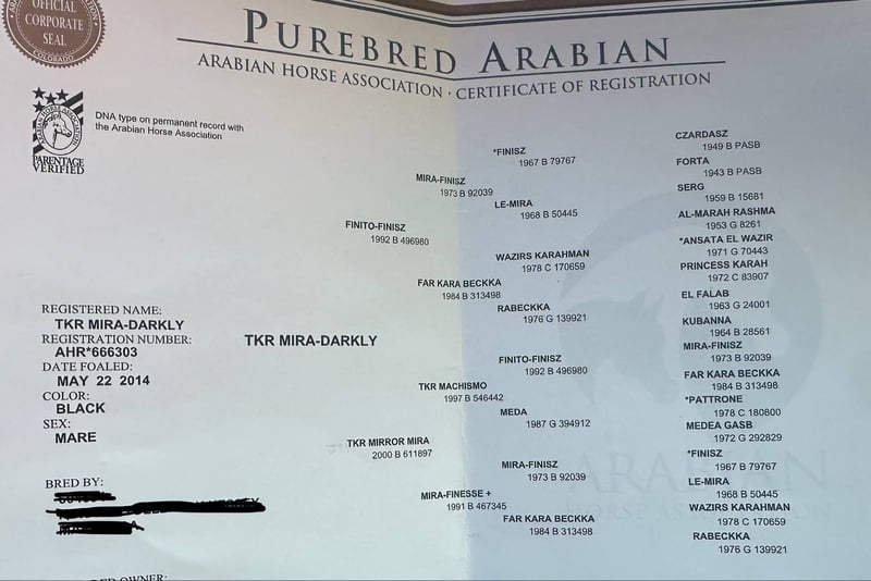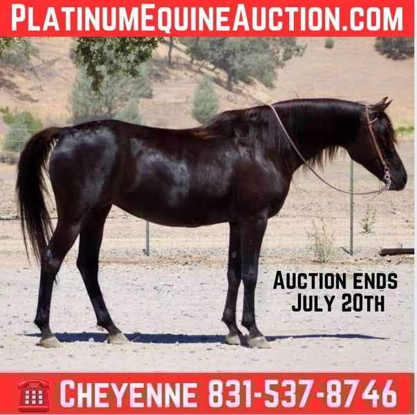 ONLINE AUCTION Place your bids at www.PlatinumEquineAuction.com Starting Bid $3500 Auction ends July 20th 2025 Need a new saddle? Check out White Rock Saddles on our website or Facebook TKR Mira-Darkly or better known as Stella looks like she just came out of the movies! This beauty is royally bred and trained. She’s 11 years old and stands exactly 15HH at her withers. Her lineage is full of champion pleasure, endurance, and halter horses from the US and as well as in Canada. Stella has a sweet personality, an attitude anyone can handle, and experience you can’t buy! Stella has been shown in endurance classes and is as good outside on the trails as a mountain goat! She is a point and go type of girl without refusal and will stay at a pace you want her too. She has been on many over night camping trips and will stay tied all night. If you name it, Stella has seen it. Beach rides with pedestrians, bicycles, and cars. Down busy roads and through national park trails crossing bridges, water and brush. Stella has beautiful fluid gaits and is very easy to direct in the arena. She knows her leads and has a nice collected stop and reverse. This girl is safe for anyone to ride. If you can get on her back you can ride her. She has zero buck and no funny business. Stella is good in the pasture with other horses or stalled up alone. She is great for the farrier and has good solid feet that don’t require any shoes! She clips, ties and bathes without a reaction and is always the first to meet you for a treat! Stella is one the whole family can enjoy or one that can carry you to any destination of your dreams! She is located in Bitterwater, ca. for more info contact Cheyenne Rey 831-537-8746. ONLINE AUCTION Place your bids at www.PlatinumEquineAuction.com Starting Bid $3500 Auction ends July 20th 2025 Need a new saddle? Check out White Rock Saddles on our website or Facebook