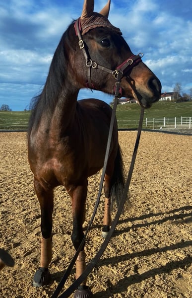 Zum Verkauf steht eine hübsche Vollblutaraber Stute, geboren 2009, mit einem Stockmaß von ca. 1,51 m. Die Stute ist super lieb im Umgang, menschenbezogen, genießt Aufmerksamkeit und ausgiebige Kuscheleinheiten. Gleichzeitig ist sie kein Anfängerpferd. Sie ist charakterstark, etwas dominant und weiß genau, was sie möchte. Daher eignet sie sich am besten für eine erfahrene Bezugsperson die ggf. schon Erfahrungen mit Arabern gesammelt hat, da sie sich stark an „ihren“ Menschen bindet und mit häufig wechselnden Reitern nicht gut zurechtkommt. Ein typisches Ein-Mensch-Pferd, das seinem Menschen sehr treu zur Seite steht. Sie arbeitet sehr gerne und zeigt besonders Freude an: - Bodenarbeit - Longenarbeit / Doppellonge - Handarbeit - kleineren Sprüngen Unter dem Sattel ist sie brav und motiviert, bringt durch ihren Vollblutanteil jedoch ordentlich Go und Energie mit. Daher passt sie am besten zu einem Reiter, der Spaß an einem sensiblen, fleißigen Pferd hat. Ins Gelände geht sie gerne, fühlt sich dort jedoch mit einem Begleitpferd deutlich wohler als alleine. Haltungsbedingt kennt sie: - Sommer: 24/7 Weidegang - Winter: Box mit täglichem Paddockgang Eine kleine, ruhige Offenstallgruppe mit 2-3 Pferden ohne häufige Pferdewechsel könnte ebenfalls gut zu ihr passen. Auch für die Zucht ist sie interessant. Sie hat bereits Fohlen bekommen und hat ihre Aufgabe als Mutter immer souverän und zuverlässig gemeistert. Gesucht wird ein passendes, liebevolles 5🌟 Zuhause, in dem sie eine feste Bezugsperson bekommt und weiterhin gefördert wird. Bei ernsthaftem Interesse freuen wir uns über eine Nachricht mit kurzer Vorstellung. 🐴