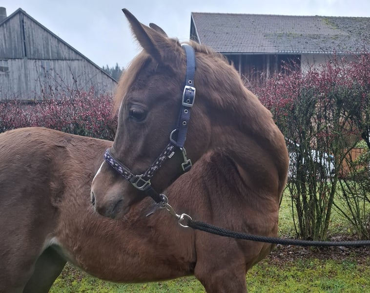 For sale is our adorable purebred Arabian mare, Rosa el Portofino. Born: February 18, 2025 Color: Chestnut Estimated final height: approximately 15.5 hh CA free Rosa is microchipped and has a passport. She is familiar with basic foal handling and is also calmly led by our daughter. She is regularly dewormed and introduced to the farrier. Currently, she spends nights in a box and during the day in a herd in an open stable. We do not send videos; a personal meeting is highly encouraged. We look forward to friendly inquiries, please contact us by phone only at 0170/2066751.