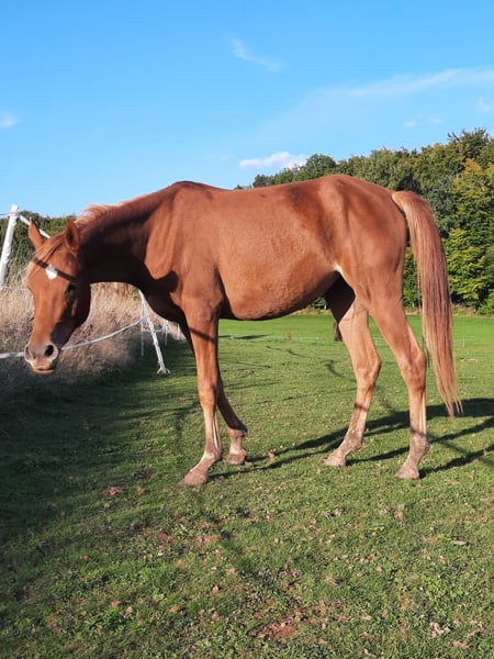 Maliah ist am 03.06.2023 geboren. Sie hat eine sehr interessante Abstammung von Jenisseij und mütterlicherseits von Psytadel. Bestechend schöne Fuchsfarbe. Sie ist temperamentvoll und mutig, neugierig darauf Neues zu lernen