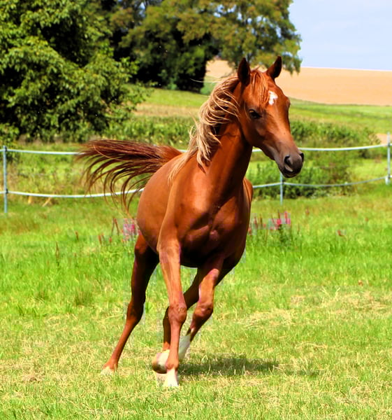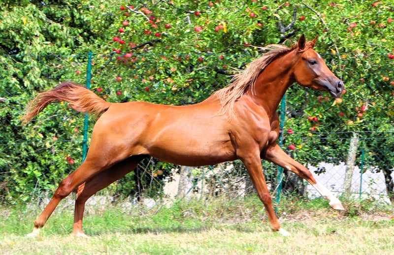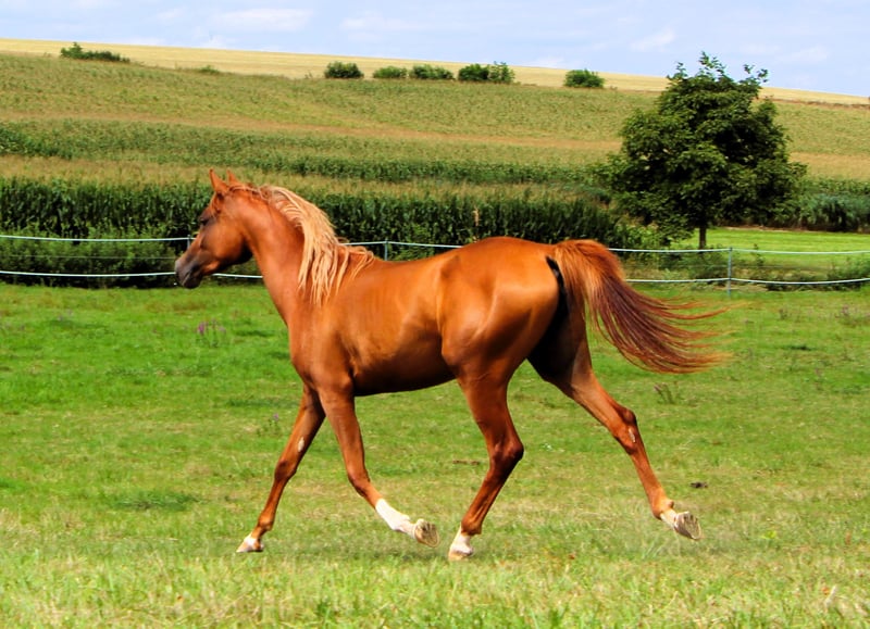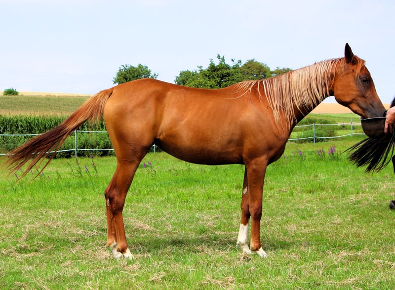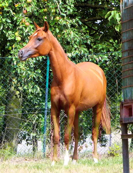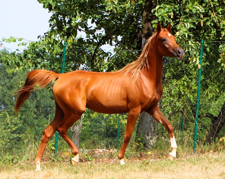 Venus est une jument de 2 ans, très belle, avec une crinière blonde. Elle est bien éduquée, connaît le fait d'être attachée, le brossage, donner les pieds, le maréchal-ferrant... elle monte gentiment dans le van et voyage aussi seule. Elle a déjà participé à 2 concours où elle a reçu de bonnes évaluations. Lors du dernier concours, spécialement pour les chevaux de performance, elle a remporté la victoire dans sa catégorie d'âge. Ce n'est pas surprenant, car non seulement sa mère a couru sur de longues distances, mais son père, un petit-fils de Persik, a également été extrêmement performant sur de longues distances. Venus a un caractère doux, aime passer du temps avec son humain et apprend très vite. Elle a sûrement hérité du merveilleux caractère de son père. En effet, quel étalon monte une jument le matin et se laisse monter l'après-midi lors d'un défilé équestre de Pentecôte, une main sur la selle et un grand drapeau dans l'autre main ? Venus est située en Alsace, à 67160 Siegen.