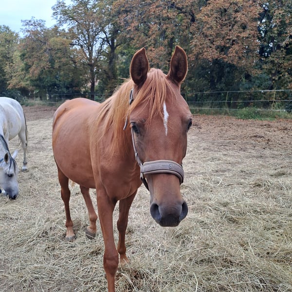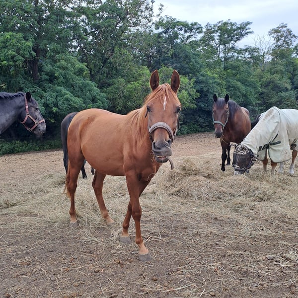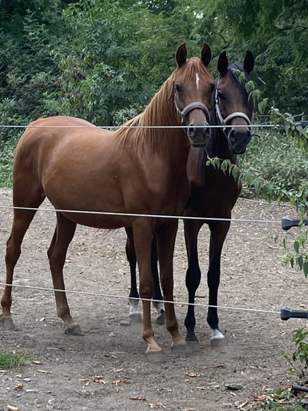 Due to family circumstances, I must reluctantly sell my beautiful Eyota (the Great). She was born with me (2023) and has grown up with peers, familiar with stalls, open stables, and pastures. Eyota is very affectionate and cuddly, loves to be groomed, walks nicely on the lead, and stands calmly for the farrier. She has no bad habits and is well-mannered. Eyota could certainly stay for further upbringing if desired. She will be approximately 155cm tall, comes from old, healthy lines, and would surely make a great riding horse. Both parent horses are ridden, wonderfully clear-headed, and have reliably passed this on to Eyota. She is a beautiful dark chestnut with a light mane. Naturally, she is regularly vaccinated, dewormed, and microchipped! Eyota also has full papers. Price is negotiable. Transport is possible. Please only serious inquiries. Feel free to contact me via WhatsApp or call.