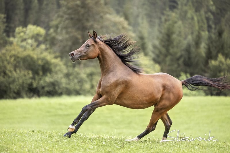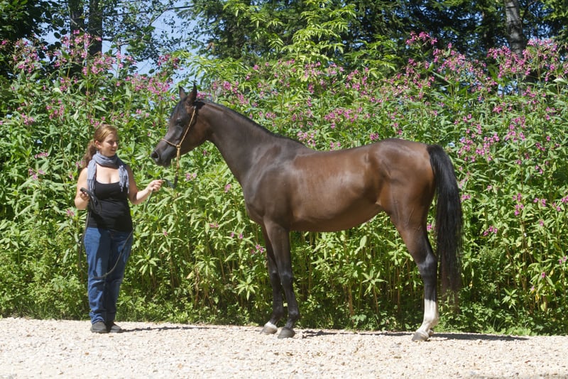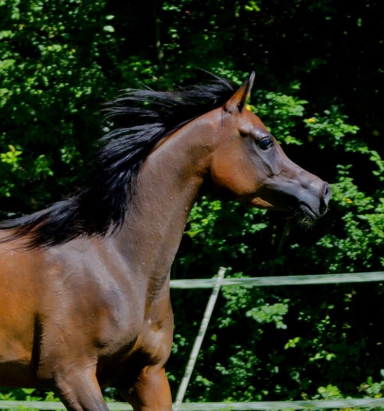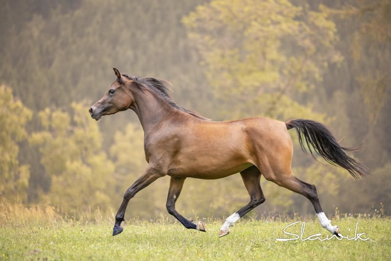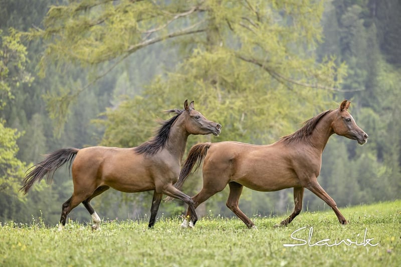 **Sale ad: Purebred Arabian mare** For sale is a beautiful purebred Arabian mare born Feb. 2022. This young lady impresses with her elegant appearance and excellent breeding quality. She is for sale as we are downsizing and returning to our roots... black breeding. **Characteristics:** - Breed:** Thoroughbred Arabian - Sex:** Mare - **Year of birth:** 2022 - **Color:** bay - Height:** 150 cm - **Application:** Breeding but also conceivable for leisure sport. This mare is ideal for breeders and leisure riders who value noble bloodlines and excellent conformation. She has a friendly nature and shows great potential for future breeding projects. If you are interested or for further information, please contact us.