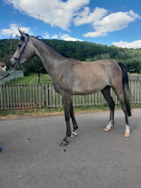 For sale is our charming Thoroughbred Arabian mare, born in 2022. She presents herself in an elegant gray coat and will reach a height of approximately 152 cm. This charming mare is excellent for leisure activities and is ideal for horse lovers looking for a loving and reliable companion. She is friendly, curious, and well-mannered. Our mare has already gained a lot of experience with people and is ready for new adventures. She is well-trained and has a gentle nature, making her a perfect partner for rides and relaxed hours in the countryside.