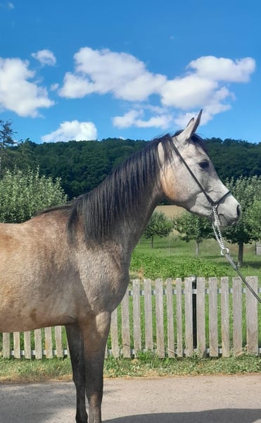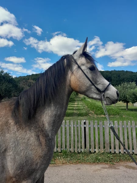 Zum Verkauf steht unsere bezaubernde Vollblutaraber-Stute, geboren im Jahr 2022. Sie präsentiert sich in einem eleganten Schimmelkleid und wird ca. ein Stockmaß von 152 cm erreichen. Diese charmante Stute eignet sich hervorragend für die Freizeitgestaltung und ist ideal für Pferdefreunde, die ein liebevolles und zuverlässiges Tier suchen. Sie zeigt sich freundlich, neugierig und ist gut im Umgang. Unsere Stute hat bereits viele Erfahrungen im Umgang mit Menschen gesammelt und ist bereit für neue Abenteuer. Sie ist gut erzogen und hat ein sanftes Wesen, was sie zu einer perfekten Partnerin für Ausritte und entspannte Stunden im Gelände macht.