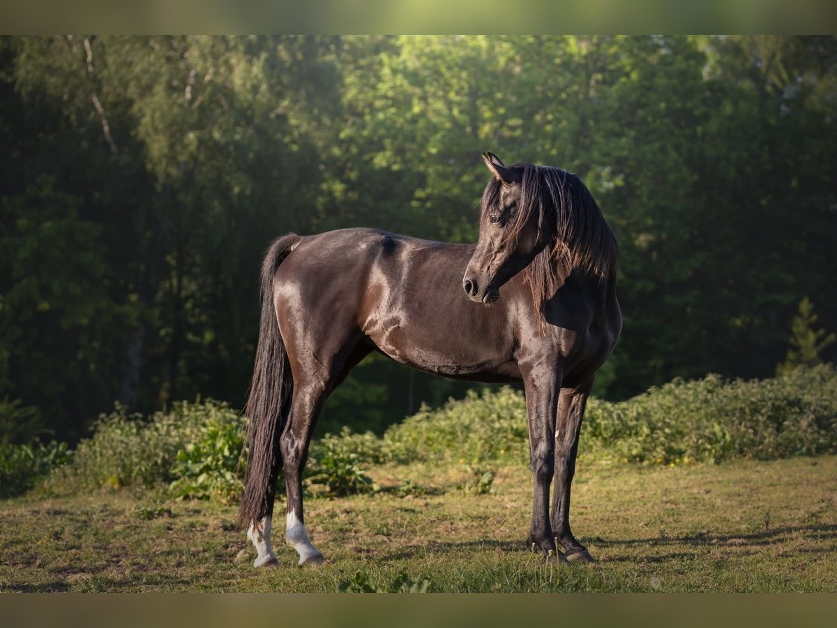 A 2022-born homozygous black Purebred Arabian mare, combining rare colour genetics with a calm, thoughtful mind and a strong, natural upbringing. She is the kind of horse you build a relationship with — day by day, year by year.