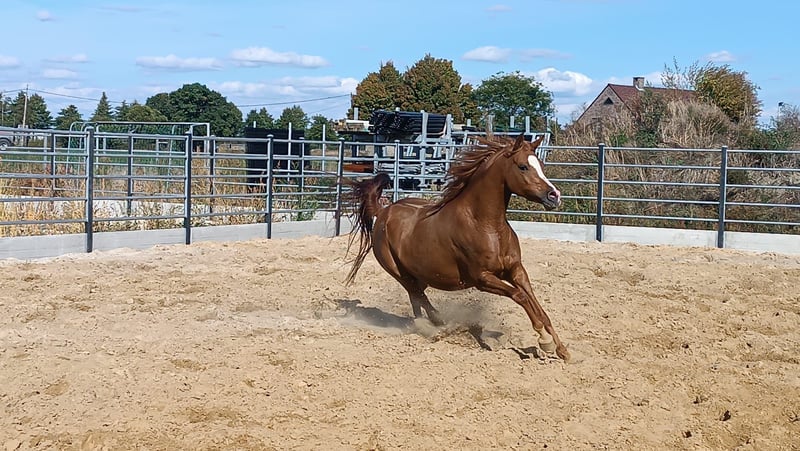 Schöne Fuchsstute mit die Blutlinien von Fa El Rasheem, WH Justice und DA Valentino by Versace. Mehr Infos auf Anfrage.