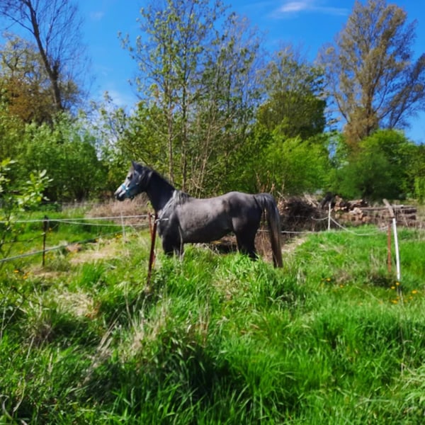 Diese wünderschöne und typvolle Araberstute sucht einen neuen Mörchengeber. Sie besticht durch ihr menschenbezogenes Wesen und den unkomplizierten Umgang. Sie vereint durch ihre Abstammung Leistung mit Schönheit. Auffällig ist der sehr elastische Trab und der kraftvolle Galopp. Sie ist sehr bewegungsstark und sehr wendig. Ich kann sie mir daher auch im Westernreiten gut vorstellen. Interessant ist auch, trotz der Rasse, ist sie im Wesen sehr ausgeglichen. Sie ist sehr menschenbezogen, gelehrig und wie schon beschrieben, unkompliziert in ihrer Handhabung. Sie ist hier geboren und in einer Herde gross geworden. Sie kennt Boxenhaltung, aber zur Zeit 24/7 auf der Weide. Sie wurde über den Sommer ganz schonend am Hof angeritten, leider abgebrochen, da die Bereiterin nach Süddeutschland gezogen ist. Video gerne über Whatsapp! Ist ca 155 cm gross.