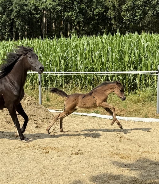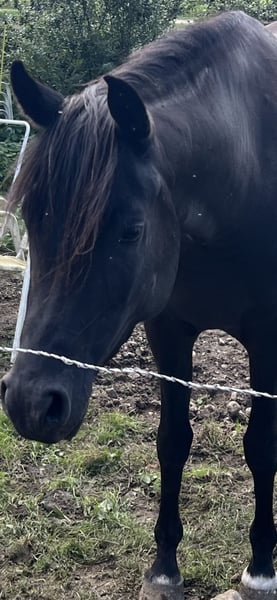 My beautiful Amy is looking for her heart person, someone who has time for her and can show her the world, for whom she can be a friend and partner. Amy is curious, clear-headed, always eager to participate, and wants to do things right. She has just had her first foal at her side, but she is not happy with that; she wants to be important to someone, someone who will explore nature with her and support her. She loads into the trailer without any problems, enjoys going for walks alone and away from the herd, and will soon be prepared for her riding career. Amy was born and raised with me. Her mother and brother are also with me. As a foal, she had an injury on her forehead, which has left a thickening as a scar. This could be surgically removed, but since it would only be a cosmetic procedure, we chose not to do it; it doesn’t bother her, she is our little unicorn. Not everyone has that. She is low in the herd hierarchy, so she should not be in too large groups. She lives 24/7 in a loose housing system with a hay feeder. A place in a loose housing system, movement, and horse companionship are prerequisites. We look forward to friendly inquiries with a brief info about your space, plans, etc. You are welcome to come and take a look and get to know her. If you have any questions, feel free to contact me at 01729919663