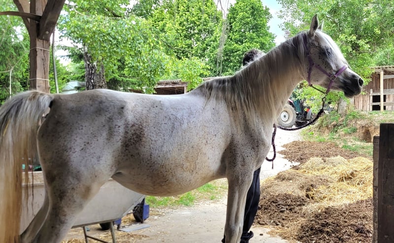 Verkaufe Vollblutaraber-Stute – Fliegenschimmel, Geburtsjahr 2019 Diese elegante Vollblutaraber-Stute besticht durch ihre anmutige Erscheinung und ihre hervorragende Zuchtlinie. Geboren im Jahr 2019, ist sie eine vielversprechende Zuchtstute mit einem beeindruckenden Stockmaß von 154 cm. Ihr wunderschöner Fliegenschimmel-Farben macht sie zu einem echten Blickfang. Sie ist bestens geeignet für die Zucht und überzeugt durch ihre gute Abstammung sowie ihr angenehmes Wesen. Die Stute ist gesund, regelmäßig geimpft und frei von bekannten Krankheiten. Sie hatte letztes Jahr ein schönes Stutfohlen. Wegen eines kleinen Schönheitsfehler zu einem moderaten Preis abzugeben Bei Interesse oder für weitere Informationen stehe ich gerne zur Verfügung. Besichtigungen sind nach Vereinbarung möglich.