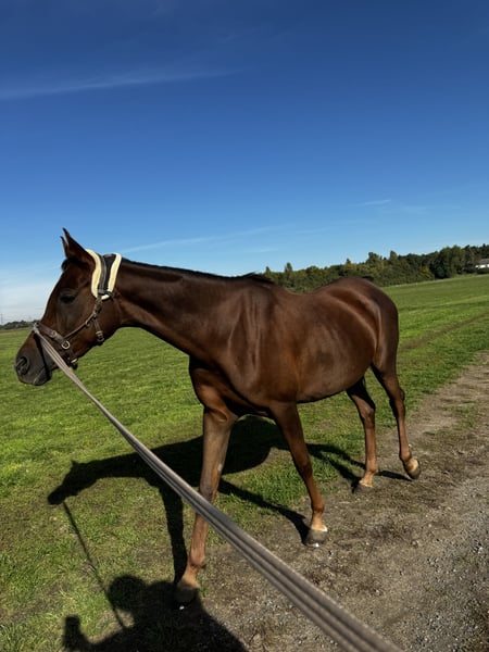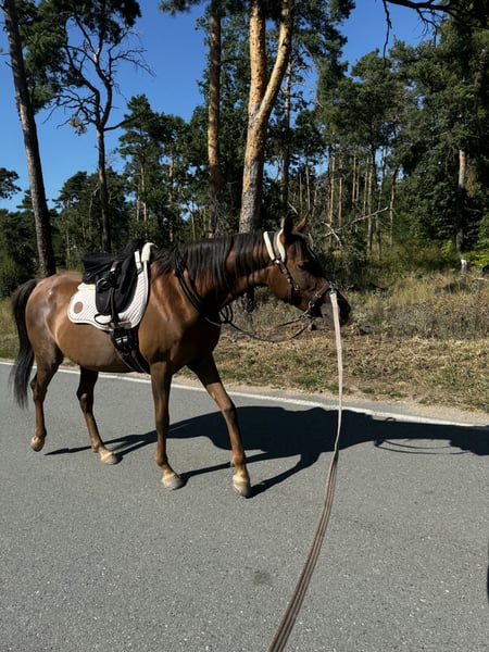 Special mare available for loving hands – purchase option possible I am looking for a new home for my fine, affectionate mare with someone who values sensitive and respectful communication as much as she does. ✨ About the mare: • very gentle in handling, attentive and people-oriented • sensitive, gentle, and always eager to please her person • currently only backed, knows walk and trot so far • not looking for a daily riding partner – rather someone who enjoys groundwork, walks, and quiet moments with the horse • small and lightly built, therefore ideal for sensitive riders or people with a gentle hand • 8 years old, 158 cm tall • not suitable for breeding 👤 Desired person: • seeks closeness to the horse through trust and communication • does not want a sporty engagement, but a partnership on the ground and during walks • brings time, calmness, and empathy The mare is currently available with a purchase option. Finding the right home is more important to me than anything else – please only serious inquiries from horse lovers who truly have an interest in a fine companionship. 📍 Location: 01619 💌 If interested, I look forward to a personal message with some information about you and your experience with horses.