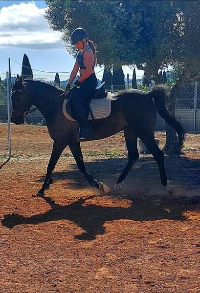 Yegua árabe de agosto 2017 (8 años) 1m55/57 Con pasaporte francés origines (USA) padre negro Raid Doma Salto 90cm con niña de 12 años Paseo sola o grupo Info, precio, vídeos,fotos por privado Solo por persona responsable 625293054