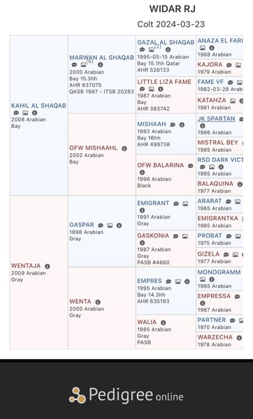 Vader : Kahil Al Shaqab Moeder : Wentaja (by Gaspar) kleur : wordt grijs Zeer mooie bloedlijn Mooie bewegingen - stevige rug en benen Fijn, rustig karakter - leert snel Zeer braaf bij hoefsmid en dierenarts Ingeschreven in het Belgisch Arabisch PaardenStamboek - in orde met inentingen en ontworming Staat overdag op de wei met ander paard. 's nachts gaat hij op stal. Voor meer info, stuur PM via whatsApp +32 494 188 946
