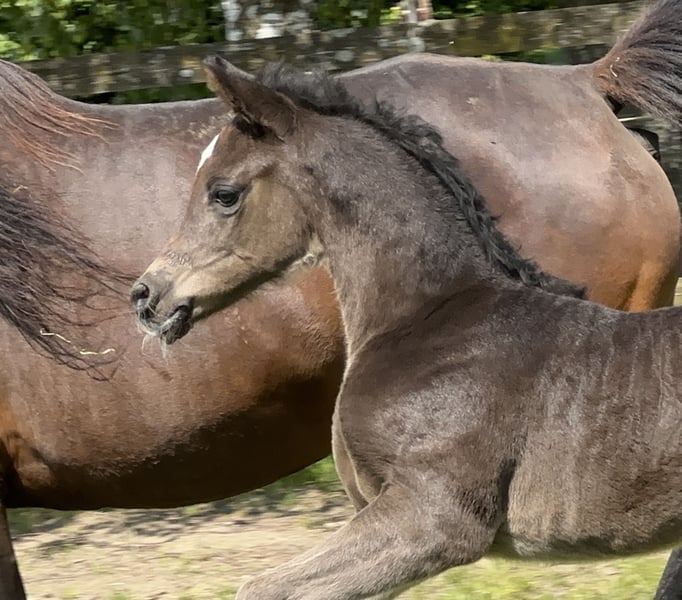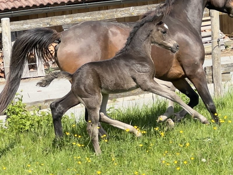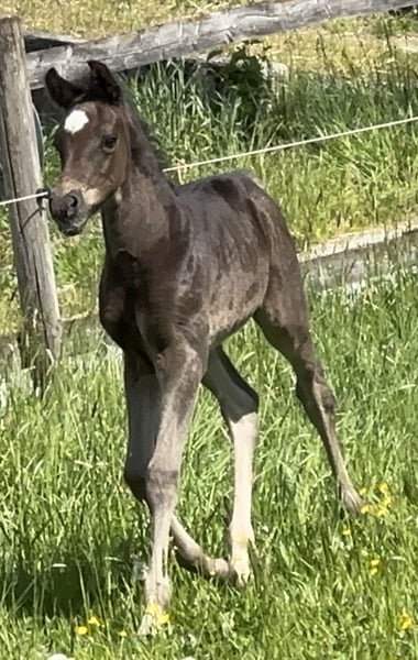 Simply A Surprise AB Ist ein großrahmiges Rapphengstfohlen mit hervorragender Bewegungqualität. Vom Reiter - für Reiter gezüchtet! Wie alle aus der Familie ist er sehr korrekt, typvoll und mit bestem Charakter ausgestattet. Durch die leistungsgeprüfte Elitestute Heart of Fire auf die Simply A Surprise liniengezogen ist, ist die Stutenlinie der Elitestute YA Heartbreaker fest in seinem Pedigree verankert. Aus dieser Stutenlinie stammen folgende auf international 160 km erfolgreiche Distanzpferde: Abou Aichan - Florac Teilnehmer 160km Hariya ED - siegreich 160km Ali Baba Anuar AB - WM Teilnehmer Mutter ist die ZSAA Prämienstute Esme AB vom gekörten Sharaf Fareed AB.. Ihre Mutter Eboria Via Romana war rennleistungsgprüft und später noch Therapiepferd. Vater von Simply A Surprise AB ist der leistungsgeprüfte Prämienhenst Simply The Best AB. Er war auch auf der ECAHO Schau in Stadl Paura Senior Champion Hengst. Für Simply A Surprise AB suchen wir bevorzugt einen Platz in fördernden Händen. Beider seiner Vollgeschwister sind ZSAA 2* bzw 3* prämiert. Der 3jährige Vollbruder Silas AB ist 2025 Silber Champion der Junioren Hengste in Stadl Paura. Bitte melden Sie sich direkt bei uns Angelika Bruckner Tel 0171 7494947 oder email info@bavaria-pferdesport.de