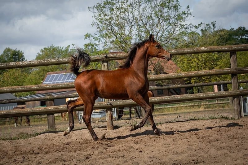 An outstanding opportunity to acquire a high-quality 2025 Arabian colt with a world-class genetic background. This young stallion combines the most prestigious international bloodlines, making him an ideal prospect for showing, breeding, or high-level sport. Pedigree Highlights: • Sire: A Kanz of Kossack (Kanz Albidayer x Ariel) A multi-national and international show champion and recipient of the prestigious WAHO Trophy. He is a rare find in the Arabian breed, standing at an impressive 162 cm, proving that beauty can meet size. Beyond the show ring, he has also proven his athletic ability in dressage. • Dam: Wayadera (QR Marc x Wiazma) A daughter of the world-renowned QR Marc, she brings unmatched elegance, refinement, and noble character to this colt’s heritage. Key Characteristics: • Modern Type: Tall, elegant frame with a refined "dry" head and noble expression. • Exceptional Movement: Powerful, elastic gaits that make him a standout for both the show ring and under saddle. • Size & Substance: Inheriting his sire's significant height, he is built for the modern demands of equestrian sports. Future Prospect: Whether you are looking for a top-tier show contender, a future breeding stallion, or a premium sport horse (dressage/endurance), this colt represents the perfect blend of tradition and athletic performance.