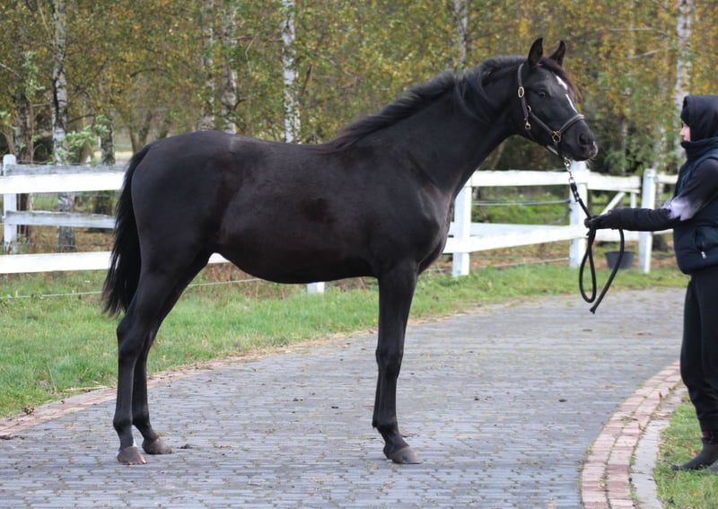 Beautiful, black homozygous 2024 colt looking for the best home! He is a nice young male, strong built with good movements. Final estimated height is approximately 157/158 cm; currently, he is 145 cm at 1.5 years old. Interesting old Polish bloodlines, mixed with the best Egyptian lines such as Thee Desperado, Bey Shah, Bey El Jamaal... Khalif is a prospect for breeding but mainly as a future riding companion for trails or endurance because of his top endurance sire's line (Wagram****, Palas****, Hadban Enzahi, etc.) and well-balanced and brave character. He is closely related to 120/160/210 km horses, for example: Ro Shy Moon - recent winner of the 160 km Dubai and speed record holder. Ro Patagonia - 3rd in CEN 160 km HH President Cup UAE. Half-brother Jaskier is a 2x winner in 120 km prestige races in UAE. His uncle Maestro (half-brother to sire) was 5th in CEI*** 160 km Castiglione Dl Lago and 13th in CEI*** 210 km Samorin. His aunt Sokolda (full sister of sire) was 2nd in CEI* 100 Schweich, 3rd in CEI** 120 km Fontenbleau. And many, many more world top horses!! Khalif is a very people-oriented horse, calm, easy, and very friendly. Curious and brave. Very well handled. His mother is a bombproof horse. Registered in PASB, DNA tested, microchipped, etc. Price + 8% VAT More info on WhatsApp +48 513 179 245 https://www.black-arabians.com/