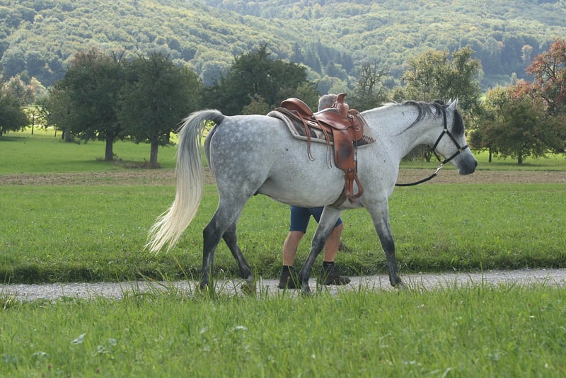 For sale ⚜️ SA Sandro ⚜️ a stunning purebred Spanish Arabian stallion born in 2018. This elegant grey has a height of 15.3 hh and impresses with his graceful appearance and friendly demeanor. He comes from a top-quality breeding program and has been awarded the silver ribbon by VZAP. If you are interested or have any questions, please feel free to contact me at 0175 285 1979. He is accustomed to walking alone, showing courage and confidence when crossing puddles, manhole covers, fluttering ribbons, or plastic sheets. With some training, he can become an excellent leisure partner, but thanks to the silver ribbon awarded by the VZAP association, he is also suitable for breeding. He already has two purebred Spanish foals. Come see him, fall in love, and make him yours!