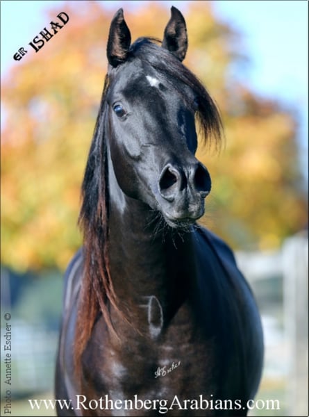 Semental árabe negro egipcio de pura raza GR ISHAD, premiado con el oro, por el semental negro GR Nashad (Kuwait), hija del famoso multicampeón Classic Shadwan. Exótico en tipo, tamaño, excelente conformación y movimientos, un carácter fantástico, un pedigrí de primera y un pelo largo exuberante le caracterizan. Sus potros ya están en casa de criadores de 3 continentes. Envío ocasional de semen de la mejor calidad, garantía de potro vivo (cobertura posterior en el año siguiente, cambio de semental posible previo acuerdo). En la actual temporada de cría, un total de 15 sementales egipcios puros están a su disposición - en parte en nuestra yeguada, en parte fuera en la estación de cría o mediante envío de semen fresco y en parte también mediante semen congelado - ¡un total de 11 sementales! Sementales de renombre mundial, algunos de ellos ganadores de oro o de licencias, algunos de ellos con grandes éxitos en exposiciones y exitosos hijos en todo el mundo. Negros (parcialmente homocigóticos) / bayos / grises. Todos los sementales están libres de SCID y CA, honorarios a partir de 700 euros (dependiendo del semental y la raza / pedigrí de la yegua) - condiciones exactas a petición. Además, siempre tenemos potros, caballos jóvenes y caballos de cría de nuestro propio programa de cría de éxito en todo el mundo, así como de los clientes de cría para ofrecer - más información se puede encontrar en nuestra página web www.Gestuet-Rothenberg.de o todos los caballos actuales para la venta a petición. Para más información, llame al 0049 / 0 90 91 / 37 07 o envíenos un correo electrónico (por favor, envíe su consulta SÓLO por correo electrónico con su nombre completo y dirección - gracias). Síganos en Instagram: @RothenbergArabianStud