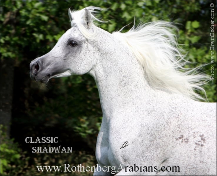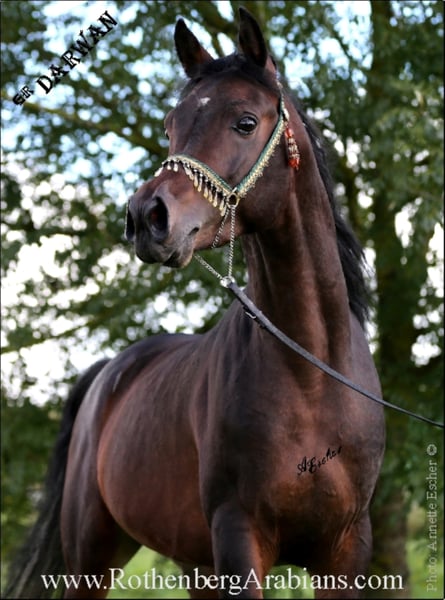 Goldprämierter, reinerbiger rein ägyptischer Vollblutaraber-Rapphengst GR ISHAD vom goldprämierten Rapphengst GR Nashad (Kuwait) aus einer Tochter des berühmten Multi-Champions Classic Shadwan! Exotisch im Typ, Größe, super Gebäude & Bewegungen, ein fantastischer Charakter, bewährtes Spitzenpedigree sowie üppiges Langhaar zeichnen ihn aus! Seine Fohlen sind bereits bei Züchtern auf 3 Kontinenten zuhause! Zeitweise Samenversand in bester Qualität, Lebendfohlengarantie (Nachbedeckung im Folgejahr, Hengstwechsel nach Absprache möglich). In der laufenden Decksaison stehen Ihnen insgesamt 15 rein ägyptische Hengste zur Verfügung - teils bei uns im Gestüt, teils auswärts auf Deckstation bzw. über Frischsamenversand und zum Teil auch mittels Gefriersamen - insgesamt 11 Rappen ! Weltbekannte Spitzenhengste teils gold-prämiert / Körungssieger, teils mit großen Schauerfolgen sowie erfolgreicher Nachzucht in der ganzen Welt! Rappen (teils reinerbig) / Braune / Schimmel! Alle Hengste sind SCID & CA frei, Decktaxen ab Euro 700,- (je nach Hengst und Rasse / Abstammung der Stute) - genaue Deckbedingungen auf Anfrage. Außerdem haben wir sowohl aus unserer eigenen, weltweit erfolgreichen Zucht sowie von Deckkunden immer wieder Fohlen, Jung- und auch Zuchtpferde anzubieten - mehr Infos teilweise auf unserer Homepage www.Gestuet-Rothenberg.de bzw. alle aktuellen Verkaufspferde auf Nachfrage. Nähere Infos gerne telefonisch unter 0049 / 0 90 91 / 37 07 oder per e-mail (bitte Anfragen per e-mail NUR mit vollständigem Namen und Adresse - danke!). Folgen Sie uns auf Instagram: @RothenbergArabianStud
