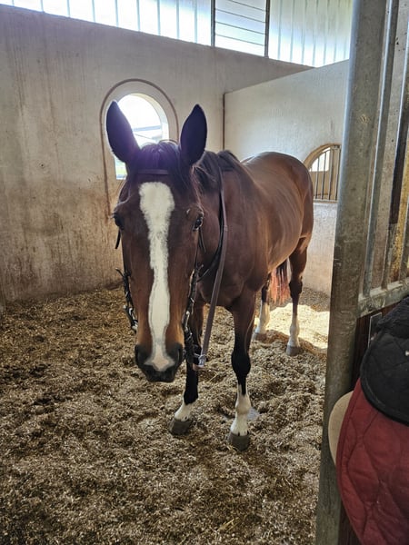 Horse for an experienced rider, suitable for fox hunting. Former show jumping competitor on the track.