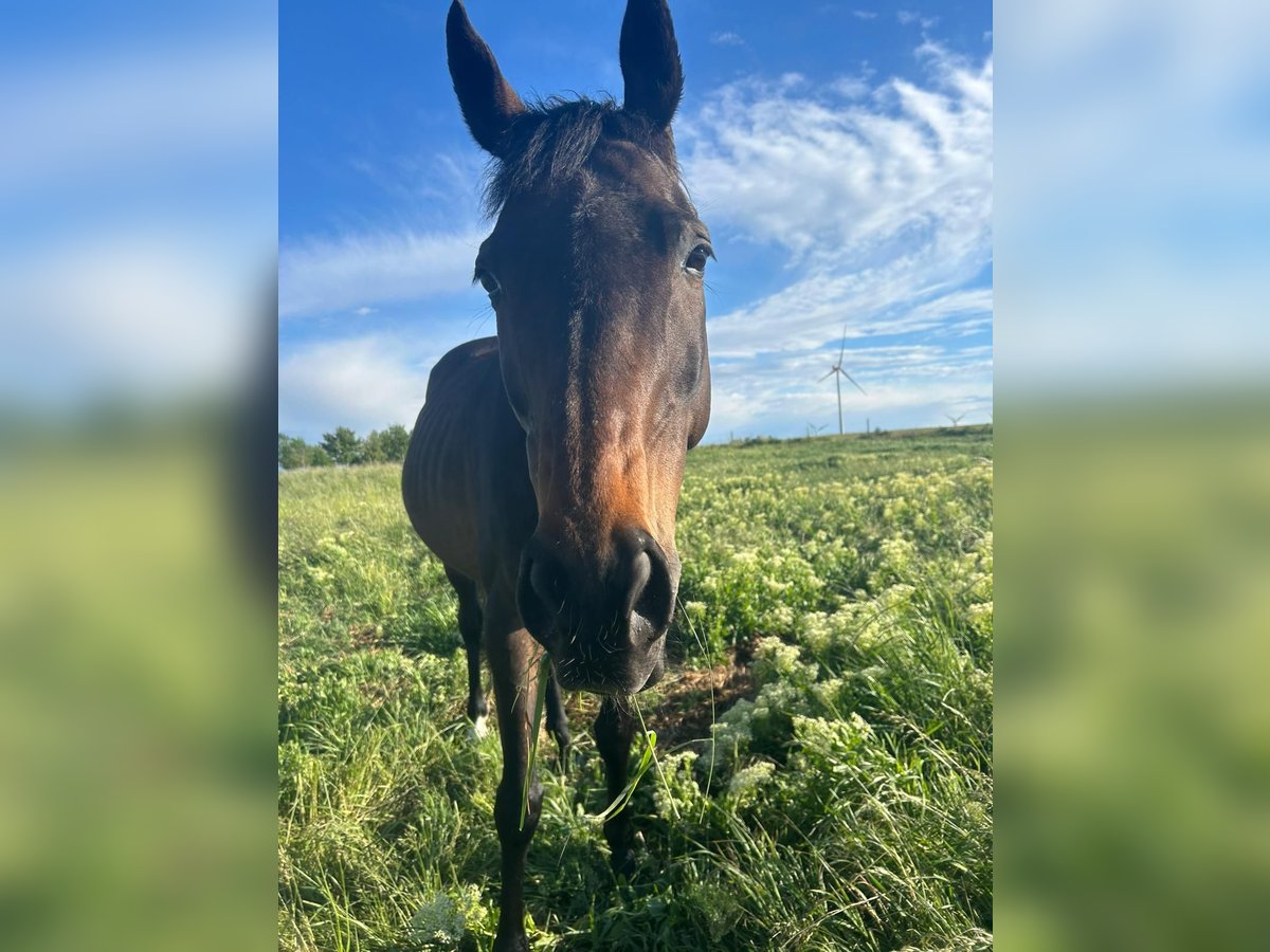 Wir suchen für unseren Wallach ein neues Zuhause. Er ist ein 12-jähriger dunkelbrauner Wallach mit 3 tollen Grundgangarten, geht alleine, sowie in der Gruppe ins Gelände, ist schmiedefrom und zurzeit Barhufer. Bei uns steht er in einer gemischten Herde mit Offenstallhaltung und 24/7 Heu. Er wurde von mir (37 Jahre) und meiner Tochter ( 13 Jahre) freizeitmäßig in der Halle und im Gelände geritten. Er ist jederzeit brav und händelbar. Er bemüht sich sehr jederzeit zu gefallen und ist lern willig. Durch seiner lieben sympathischen Art ist er vielseitig einsetzbar und ist neuem gegenüber aufgeschlossen. Wir wünschen uns für ihn eine neue Familie, die seine freundliche und liebe Art zu schätzen weiß und ihn weiterhin fördert. Bei Interesse oder für weitere Informationen stehe ich gerne zur Verfügung. Besichtigung und Probereiten sind nach Absprache gerne möglich. Bei Bedarf mit kompletten Zubehör abzugeben. (Sattel, Trense, Decke... ect.)