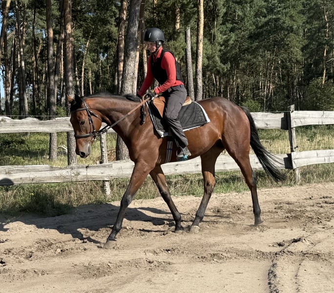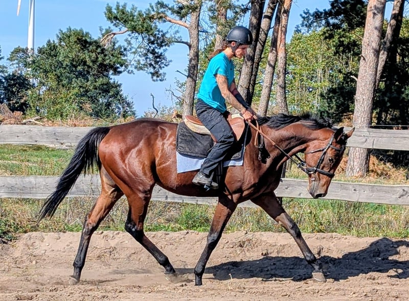 Croco ist ein Pferd zum verlieben, vorallem wenn man auf ihm drauf sitzt. Er ist total unkompliziert, gelehrig und brav. Lässt sich problemlos in allen drei Grundgangarten reiten, zeigt sich unerschrocken, Herdenverträglich und brav im Gelände. Er geht sowohl alleine wie auch mit der Gruppe ins Gelände und hört seinem Menschen ständig zu. Er ist auch mit verschiedenen Reitern kompatibel und stellt sich super auf seinen Reiter ein. Er kennt auch die Longenarbeit. Aktuell lebt er halbtags in einer großen gemischten Herde bei Wind und Wetter draußen und halbtags in der Box. Beides genießt er sehr und wäre sicher auch ein Pferd welches glücklich im Offenstall werden würde. Dies ist aber kein muss. Er hat einen Wallach und eine Stuten Freundin auf der Koppel und zeigt sich in der Herde mit 60 anderen Pferden sehr sozial. Unkomplizierter, gelehriger Wallach für den sicher alle Wege offen stehen. Er bringt keine gesundheitlichen Einschränkungen mit sich und keinerlei Unarten. Gechipt, geimpft, Schmiede- und Verladefromm. Aktuell Barhuf und kommt ohne Eisen sehr gut zurecht. Bei weiteren Interesse gerne per Anruf oder WhatsApp melden 01633276779