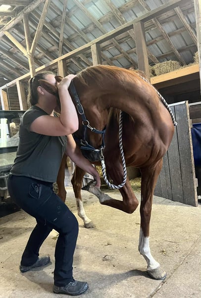 Klacz, PS, urodzona 27.04.2021, 167 cm Łagodna i przyjazna dla człowieka Świetnie sprawdza się na zewnątrz, jest elastyczna i ma bardzo piękne chody Szanuje ogrodzenia, jest towarzyska wobec innych koni Posłuszna na uwięzi, podczas czyszczenia Jeżdżona w halterze Dobrze znosi załadunek i podróż w przyczepie lub ciężarówce Szczepienia, odrobaczenie, kowal, dentysta we wrześniu 2025, akupunktura 2025, osteopatia 2025, książeczka zdrowia i dokumenty Stajnia, boks, padok G3/4