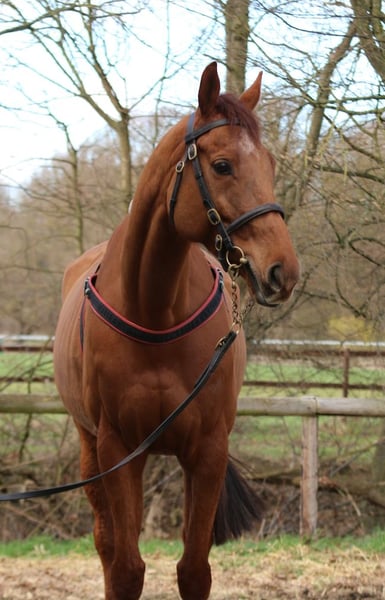 Der 8 jährige (*2018) Wallach Legionär ist ein netter, unkomplizierter und geselliger Kerl. Er ist 166cm groß, durch geimpft, schmiede- und verladefromm. Die letzten 2 Jahre hat er es ruhiger angehen lassen und war nicht im Training. Jetzt wird er wieder täglich bewegt und verbringt gerne Zeit auf der Koppel mit seinen Kumpels - mit denen er sich prächtig versteht. 🐎🧡 Bei Interesse gern einfach melden (0171 5425050) oder eine Nachricht senden und Legionär ganz unkompliziert kennenlernen! 📲 Er kann besucht werden bei uns auf dem Hof in Weilerswist (30 min südlich von Köln), am besten Montag bis Samstag zwischen 9 und 12:30 Uhr. 🥰🏇🏼