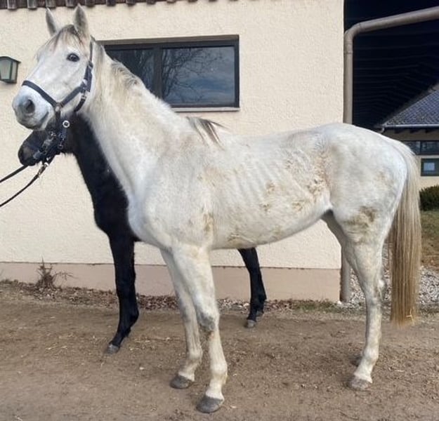 Diese sympathische und brave Schimmelstute sucht ein neues Zuhause. Sie hat mehrere Galopprennen bestritten und zwei Fohlen geboren; das letzte wurde im Januar abgesetzt. Sie ist brav im Umgang und verfügt über eine interessante Abstammung, weswegen sie sich als Zuchtstute eignet. Ein Equidenpass ist vorhanden (Deutscher Galopp e.V.) Zur Ausbildung ist uns wenig bekannt. Nach unserer bisherigen Kenntnis hat sie keine gesundheitlichen Beeinträchtigungen. Eine tierärztliche Untersuchung, Entwurmung und Hufbearbeitung wurden bereits vorgenommen. Das Pferd steht aufgrund einer veterinärbehördlich veranlassten Fortnahme zum Verkauf. Beim angegebenen Preis handelt es sich um ein Mindestgebot. Es wird um Abgabe eines schriftlichen Gebotes mit Name, Anschrift und Haltungsort gebeten. Nach Abgabe eines entsprechenden Gebotes nimmt das Veterinäramt Kontakt mit dem Kaufinteressenten auf. Vetamt@lra-ed.de Das Pferd wird unter Ausschluss der Gewährleistung verkauft. Der Verkäufer übernimmt keinerlei Garantie oder Gewähr für bestimmte Eigenschaften oder Verwendungsmöglichkeiten. Ist eine AKU gewünscht, kann diese durch den Kaufinteressenten veranlasst und auf dessen Kosten durchgeführt werden.