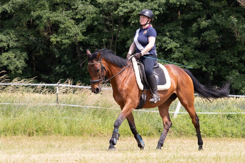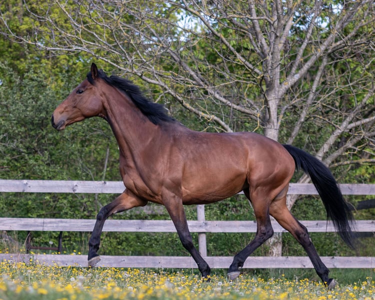 Simmy (known as Summer here) initially competed on the racetrack, then as a school horse, and now she simply needs a caring rider who can attend to her individual needs. She is a very sweet and honest mare. She rides kindly in the arena with both less experienced and more advanced riders. Lunging and double lunging are no problem for her. In the field, her sensitive nature can sometimes make her a bit lively. She requires a rider who exudes calmness and patience, avoiding nervousness or rough handling. Ideally, I am looking for a compassionate person who can help her work in a relaxed and confident manner. She is willing and should be encouraged to work. I do not see Summer in a pasture with a herd. She would thrive with plenty of turnout in a small group, combined with her own box for rest and quiet time. Summer is vaccinated, regularly dewormed, and wears front Duplos. She has recently seen an osteopath. Although she needed treatment more frequently in the past, with calmer handling, less stress, and good work, this will likely become less necessary. Three years ago, she had a foal, which was without any issues. She is also registered in the Trakehner studbook. For questions or interest, please feel free to call or message via WhatsApp. Videos will be available after a phone call.