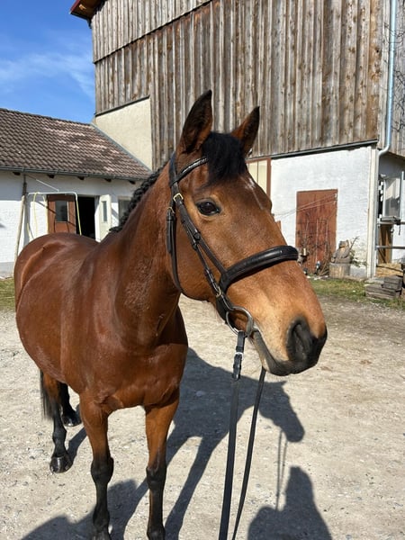 Unser Voltigierverein sucht ein neues Zuhause für unsere englische Vollblutstute, Bailey. Leider hat sie sich letztes Jahr verletzt (Strahlbeinbruch in Folge einer Hufentzündung nach Tritt in den Aufzug) und kann daher nicht mehr im leistungsorientierten Voltigiersport eingesetzt werden. Es geht ihr soweit gut und sie ist lahmfrei- so dass wir uns jetzt Gedanken um ihre Zukunft machen. Ich habe den Tip bekommen ihr Pedigree auf Zuchttauglichkeit prüfen zu lassen und dabei hat sich herausgestellt, das sie eine sehr interessante Abstammung für die Zucht hat. Der Zuchtverband Baden- Württemberg hat zugesagt, dass Bailey in das dortige " Buschprogramm" aufgenommen werden könnte. Die Eckpunkte des Pedigrees: Vaterlinie: Bailey stammt ab von Frozen Fire, einem Sohn des Montjeu (Sadler’s Wells-Linie/ Northern Dancer/ Nearco). Diese Linie ist im internationalen Hindernisrennsport als bedeutende Quelle für Härte, Mut und natürliches Springvermögen bekannt. Mutterlinie: Über die Mutter Spanish Ryham ist das Pedigree auf Leistung und Galoppiervermögen konsolidiert. Französische Hengste der alten Linien wie Reliance /Tantieme sind bekannt für besondere Konstitutionshärte und Sprungvermögen. Baileys Mutterlinie (2g) steht für Kooperation, Mut und Steherqualitäten. Bailey ist eine Linienzucht auf Northern Dancer (4x4) und Nearco (5x5). Diese Vorfahren hat sie gemeinsam mit berühmten Vielseitigkeitspferden wie z.B. Gin & Juice (Sandra Auffarth), Nereo (Andrew Nicholson) und Arctic Soul (Gemma Tattersall). Mit Courageous Comet (Becky Holder) hat sie neben Northern Dancer auch Mr. Prospector als gemeinsamen Vorfahren. Auch SAP Hale Bobs Vater Helikon ist eine Linienzucht auf Nearco (5x6). Marius (Hinrich Romeike) Vater Condrieu ist ebenfalls (4X4). Fischer Wild wave (früher Michael Jung) entstammt väterlicherseits über Water Dance ebenso wie Bailey von Sadlers wells ab (Linebreeding Nearco 4x5). Und wahrscheinlich ist es auch ein gutes Zeichen, dass der Trakehner Ausnahmevererber Arogno aus Articonius XX gezogen wurde, die ebenfalls viel Nearco Blut hatte (LB 3x4). Bailey trägt über ihren Vater sehr wahrscheinlich den X-Faktor (ein Gen von dem vermutet wird, dass es ein großes Herz und damit sehr gute Ausdauerleistung vererbt). Dosage-Profil: Mit einem Dosage Index (DI) von 0.60 und einem Center of Distribution (CD) von -0.15 ist die Stute genetisch klar auf Stehvermögen (Stamina) fixiert. Conduit Mare Profile: 2-1-4-6-3 Es zeigt, dass Bailey über ihre Mutterlinie ebenso klar ein genetisches Profil mit Fokus auf Ausdauer und Härte erhalten hat Ihren tollen Charakter beweist sie sicherlich alleine durch ihren Einsatz als Voltigierpferd bei uns in den letzten Jahren. Sie ist wunderbar mit den Kindern und alle lieben sie. Wir sind in erster Linie daran interessiert Bailey eine schöne Zukunft zu sichern, da sich unser Verein leider kein zusätzliches Pferd leisten kann, dass nicht " vedient" und sie uns aber sehr am Herzen liegt. Daher geht Platz absolut vor Preis. Eine Abgabe als Pachtstute ist ebenso möglich bzw. bevorzugt.