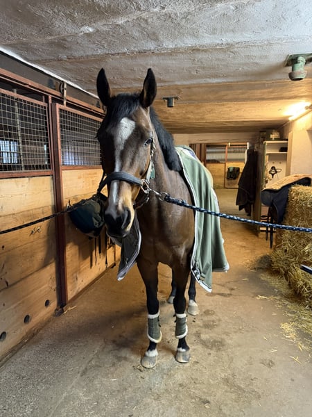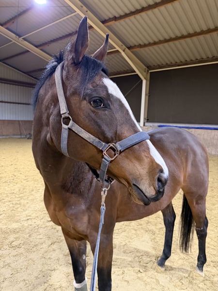 Elegant dark bay Thoroughbred mare, born in 2012, with a height of 15.8 hh. This attractive mare impresses with her athletic build and noble appearance. She is ideally suited for show jumping and has a solid basic training as well as a strong jumping instinct. Thanks to her well-ridden, calm nature, she is a promising partner for both ambitious amateur riders and professional show jumpers. A horse with great potential and character, capable of developing further across different disciplines. After four months of box rest following a pasture accident (private inquiries welcome), we are now working on her retraining. She has placed multiple times in eventing and show jumping with her previous owner, winning at E, A*, and even A** level. Also of interest as a broodmare. Unfortunately, we simply don’t have the right fit, and I am unable to support her as much as she needs. Please feel free to contact me with any questions.