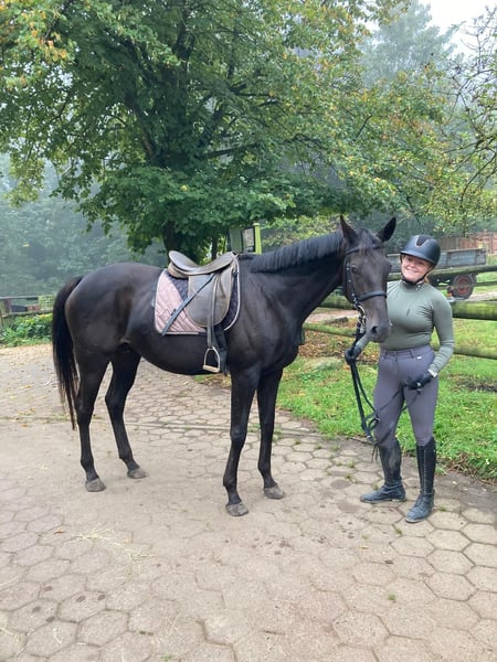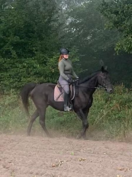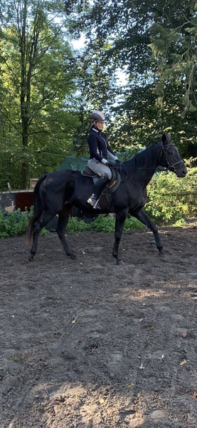 Lara Croft ist eine schwarze Vollblutstute. Sie hatte drei Fohlen und ist jetzt nicht mehr gedeckt worden. Sie ist eine völlig unerschrockene brave Stute. Auf dem Plstz und im Gelände zuverlässig. Im Umgang sehr menschenbezogen. Aufmerksam will sie immer alles richtig machen. Verladen ganz einfach alleine. LKW und Anhänger gewohnt. Gesund und frei von Allergien. Läuft barhufig. Sehr sozial in der Herde. Klebt nicht.