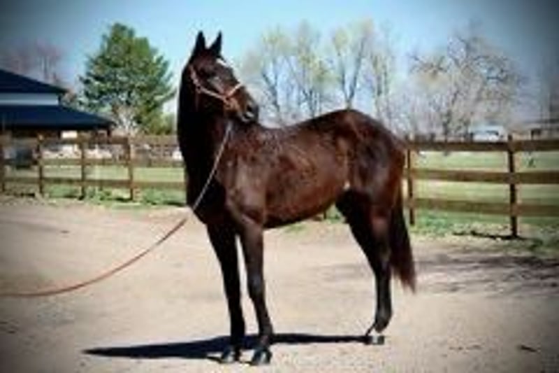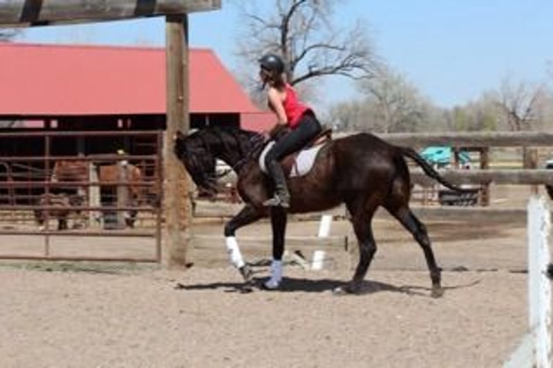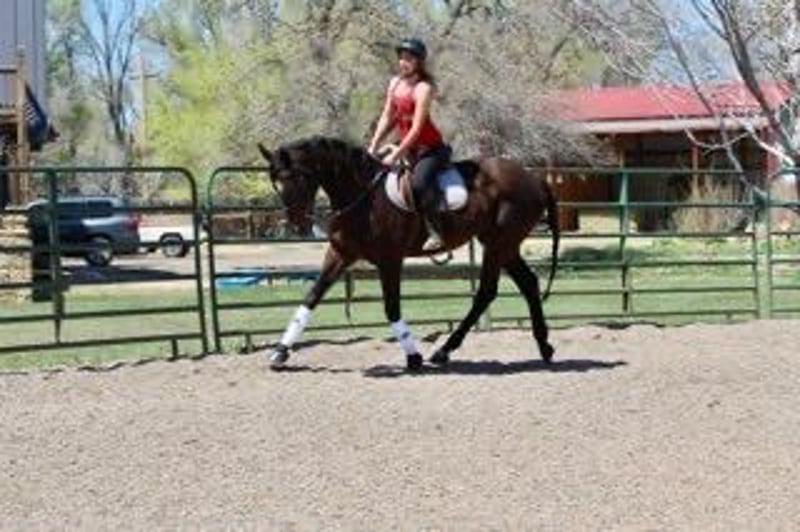 "AVAILABLE ON ONLINE HORSE AUCTION AT www DOT MagicHorseAuction DOT com BIDDING OPEN NOW thru TUESDAY | APRIL 29th - BUY IT NOW AVAILABLE! *Final price will be determined on auction site* CONSIGNOR CONTACT INFO: Dynamite Horses 970-632-3644 LOCATION: Fort Collins, CO "Dearie Dearie is a 17hand- jockey club registered OTTB mare! Dearie is one of the most stunning movers you’ll find, she moves out nicely is extremely smooth and knows where her body is. Dearie rides English/Western/bareback- she is gorgeous, uncomplicated and fun! Dearie has done a little bit of everything, hunter jumper, cross country, western pleasure, trail riding and even has taught a kids lessons. She is not hot or hard to ride and is VERY safe. Dearie has a beautiful frame up/collection- knows her leads and has a stop off of just your voice and seat- We have ridden dearie near traffic and bikes/commotion without an issue! Dearie would be perfect for someone looking for their forever partner to go whatever direction they choose, or even make an awesome lesson horse! See her video and come meet this sweet mare. " "