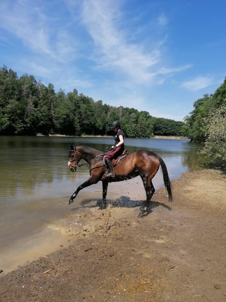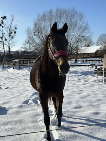 With a heavy heart, I am looking for a loving person for my Thoroughbred mare Sue, where she can find her final home. There is also the possibility to have Sue available for initial leasing. Sue is 19 years old and approximately 16.1 hands high. She is very well-behaved when ridden in the arena or on the riding yard. In the field, she can sometimes act more spirited, typical of a Thoroughbred, so she is not suitable for children or beginners in the outdoor environment. Sue has kissing spines, but this does not affect her performance. X-ray images are available. I have some history with her, and she has been in my possession for over six and a half years, which creates a strong emotional bond. Unfortunately, love alone sometimes isn't enough, and I have to admit that we are no longer the team we once were. It is important for me to say: this is not out of necessity! She will only be made available as a stabled companion. She will only be placed in a 5-star home, ideally remaining in our stable or not moving too far away. We are located in Euskirchen-Schweinheim. Since everyone may define a 5-star home differently, I will briefly clarify: For Sue, I define it as her current stable management. During the day, she is kept with a herd of mares (she was previously housed in another stable with geldings as well), and at night she is in her box. In summer, this arrangement is sometimes reversed. Our pastures are open in summer and winter. An open stable is not suitable for her. Therefore, she needs a box with daily turnout. A family environment, always one horse per owner, and, most importantly, a final home! I sincerely hope to find someone who enjoys working with her appropriately, has no issues with environmental-oriented riding in the field, and loves her at least as much as I do, so she can finally find her well-deserved final place! Please feel free to contact me privately for more details. Do not hesitate to ask questions or simply write.