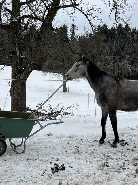 With a heavy heart, due to personal changes, I am selling my 4-year-old mare. Last year, we started lunging her and introducing the saddle. Unfortunately, I had to change stables, and things didn’t go as planned. I no longer have the opportunity to work with her. In the meantime, a lot has changed privately, and I am unable to keep her anymore. She tends to be more dominant and playful at her current stable. Initially, she can be somewhat wary of strangers until she gets to know them. She still needs a lot of training but is generally sweet and enjoys cuddling. She was regularly attended to for hoof care and has only ever been kept in an open stable. Serious inquiries only! She is for sale, not for free! Feel free to contact me if you have any questions.