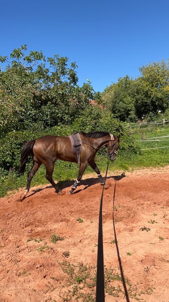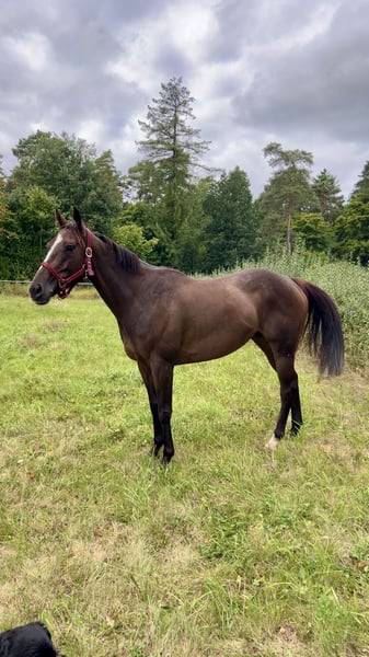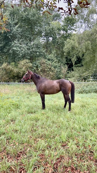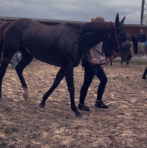 Our Thoroughbred mare is looking for a loving new home away from the racetrack. She was born in 2020, stands at 15.1 hh, and has been active in flat racing since 2023. Her last race was on October 2, 2025. She leaves the racing world healthy and is ready for a new chapter in her life. She is truly a character horse: typical mare, with opinions, heart, and humor. When ridden, she is generally well-behaved, although she can throw in the occasional buck, especially when transitioning to the canter. However, once you get to know her and have won her heart, she becomes a loyal partner with lots of charm and a huge heart. I have kept her engaged with dressage work in the arena for variety; she knows how to lunge and is well-behaved in the countryside, even alone. She is fearless, and if something does startle her, she can be quickly reassured. The mare is very routine-oriented, but once she has built trust and established a routine, she is very easy to handle. We are looking for someone who appreciates her unique personality and loving nature, someone willing to invest time and patience into building a trusting partnership, and someone who approaches her with sensitivity, courage, and a calm hand, guiding her into her new life. - NOT A BEGINNER'S HORSE!!! - Thoroughbred experience is desirable. - Trial rides are possible and encouraged! If you have any questions about the mare or are interested in her, please feel free to contact me! You can also reach me via WhatsApp at 017664932561. Please refrain from writing out of mere curiosity! Serious inquiries and genuine interest only!