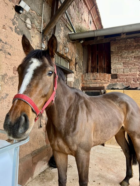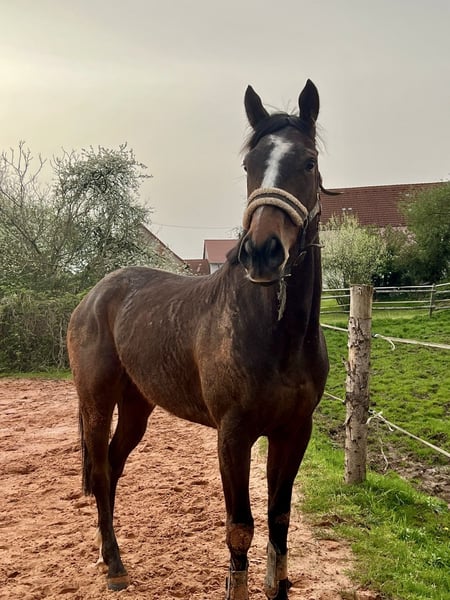 Unsere Vollblutstute sucht ein liebevolles neues Zuhause abseits des Rennsports. Sie ist 2020 geboren, hat ein Stockmaß von 1,55m und war seit 2023 im Galopprennsport eingesetzt. Ihr letztes Rennen lief sie am 02.10.25. Sie verlässt den Rennsport gesund und ist bereit für einen neuen Lebensabschnitt. Sie ist ein absolutes Charakterpferd: typisch Stute, mit Meinung, Herz und Humor. Beim Reiten ist sie grundsätzlich brav, der ein oder andere Bocksprung ist aber meistens mit drin, gerade beim Angaloppieren. Aber wenn man sie kennt und ins Herz geschlossen hat, dann ist sie eine treue Partnerin mit ganz viel Charme und einem riesigen Herz. Sie wurde bei mir zur Abwechslung immer noch dressurmäßig auf dem Platz bewegt, kennt Longe und geht artig ins Gelände, auch alleine, ist unerschrocken und sollte sie mal etwas aus der Ruhe bringen, kann man sie schnell überzeugen. Die Stute ist sehr gewohnheitsgebunden, sobald sie aber Vertrauen gefasst und Routine hat, ist sie sehr umgänglich. Wir wünschen uns für sie Jemanden, der sie zu schätzen weiß mit ihrer Eigenheit und ihrem liebevollen Wesen, Jemanden, der bereit ist, Zeit und Geduld in eine vertrauensvolle Partnerschaft zu investieren und Jemanden, der ihr feinfühlig, mutig und mit absolut ruhiger Hand und Empathie entgegenkommt und sie so in ihren neuen Lebensabschnitt führen möchte! - KEIN ANFÄNGERPFERD!!! - Wünschenswert wäre Vollblut-Erfahrung. - Probereiten möglich und erwünscht! Wer noch Fragen zu der Stute, oder Interesse an ihr hat, darf sich sehr gerne bei mir melden! Gerne auch per WhatsApp 017664932561 Von „Aus reiner Neugierde mal schreiben“ bitten wir abzusehen! Bitte nur ernstgemeinte Anfragen und ernstes Interesse!