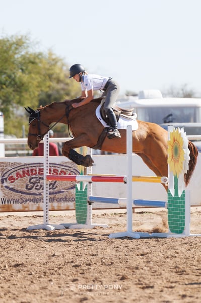 Looking for a quiet, kind, and very chill show jumper? Look no further! Q is suitable for an intermediate youth rider or beginner adult looking for a safe, honest partner. Q is uncomplicated to ride, calm in new environments, and a true barn favorite who always takes care of her rider!!! She is currently showing 2’9” or .80s. She has schooled up to a meter, with room to go higher. She has only shown in the show jumping ring, but she would 100% shine in the hunter ring as well! She’s been ridden western, moved cows, done pony rides, obstacle courses, and genuinely loves kids! She’s currently working toward a confirmed automatic lead change and making steady progress. Q also has a fun, food-motivated personality that keeps everyone laughing and makes her a joy to be around! She even knows how to give hugs! She is the perfect size, extremely gentle, learns fast, and can take a joke like no other horse I know! She is 100% sound, up to date on all care. Requires special front shoes due to prior shoeing, with no impact on performance whatsoever. PM me for more information on this gorgeous young mare 💙 Located in Waddell, Arizona :)