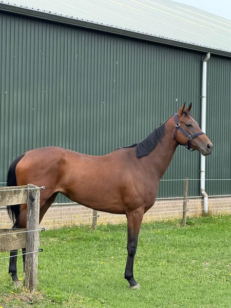Veracidad (IRE) – 4 bijna 5-jarige Engels Volbloed merrie – Te koop • Stokmaat: 1.64 m | Kleur: Bay • Afstamming: vader Cable Bay, moeder Lyin Eyes, moedersvader Equiano • Professioneel getraind, bekend met koersomstandigheden • Sportief, leergierig, werkt netjes aan de teugel • Lief, mensgericht en verkeersmak • Braaf bij hoefsmid en trailer • Meer foto’s en video’s op aanvraag • Locatie: Groeningen, Nederland 🇳🇱 • Prijs: op aanvraag Ideaal voor: sportieve recreatie met gevoel voor volbloeden. Veracidad verdient een duurzaam en liefdevol thuis. 📩 Neem contact op voor meer info over haar karakter en achtergrond.