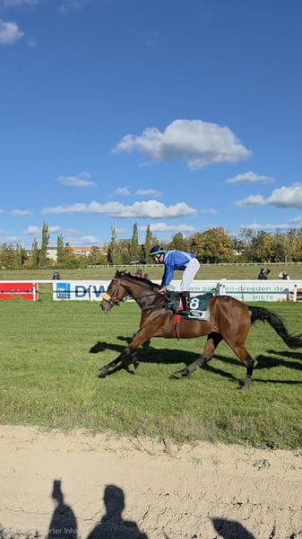 Wir verkaufen unsere Aventura ( Mr.Owen a.d. Spin a Spell) als Rennpferd oder neuen Freizeitpartner . Sie ist 4 Jahre und ca. 168 cm groß. Ihr aktuelles GAG beträgt 60kg. Mit ihrer Größe ist sie eine wahre Erscheinung. Sie kennt keine Unarten,ist leicht zu reiten und lernt schnell dazu. Durch ihr aufgeschlossene,neugierige Art verzaubert sie jeden. Da wir mit ihr regelmäßig zu Rennen gefahren sind,kennt sie natürlich den Tierarzt und Schmied. Wir wünschen für unser Mädchen ein liebevolles Zuhause wo sie noch viel lernen darf. Melde dich gerne bei mir 01604385767