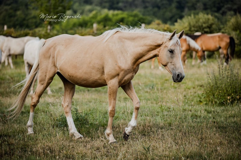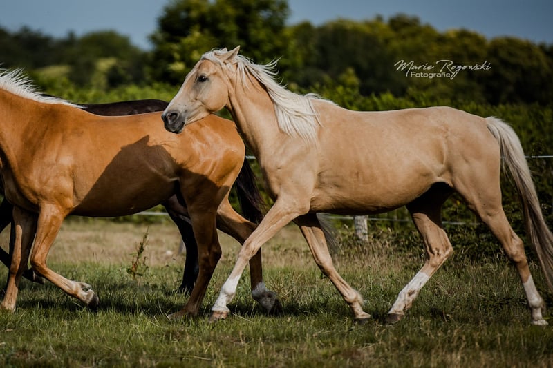 Stute | Englisches Vollblut | Palomino | geb. 2020 | aktuell 151 cm PLUME D'OR xx ist eine besonders typvolle, harmonisch gebaute Vollblutstute in der seltenen Farbe Palomino. Sie vereint Eleganz und Ausdruck mit leichtfüßigen, klaren Bewegungen und zeigt sich im täglichen Umgang aufgeschlossen und feinfühlig. Ihr Vater TCF Palladium ist der erste als Smoky Cream geborene Vollblüter weltweit und mehrfach anerkannt, unter anderem bei ECHA-ESV, AES, Zangersheide und IFCE. Seine Nachkommen überzeugen in verschiedenen Zuchtprogrammen durch Typ, Bewegung und Ausdruck. Die Mutter Painted Angel ergänzt das Pedigree durch Linien, die sowohl sportlich als auch farblich interessant sind. Plume d'or xx eignet sich hervorragend für Zucht, Sport oder eine ambitionierte private Nutzung.