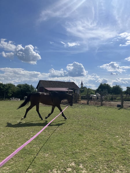 Singella ist eine Stute mit großem Herz, sehr liebenswert und intelligent. Sie wurde aus Ungarn gekauft (gezüchtet in Deutschland). In Ungarn sprang sie mit Reiter bis zu 115 cm, beim Freejump erreichte sie die maximale Höhe von 130 cm. Sie ist regelmäßig in allen vier Hufen beschlagen, die Zähne wurden zuletzt am 02.04.2025 behandelt. Die Stute besitzt ein hervorragendes Potenzial für Springen oder Dressur. Sie hat äußerst komfortable Bewegungen und wurde bereits von Anfängern und kleinen Kindern geritten. Ihre Eltern sind sehr erfolgreich im Rennsport.