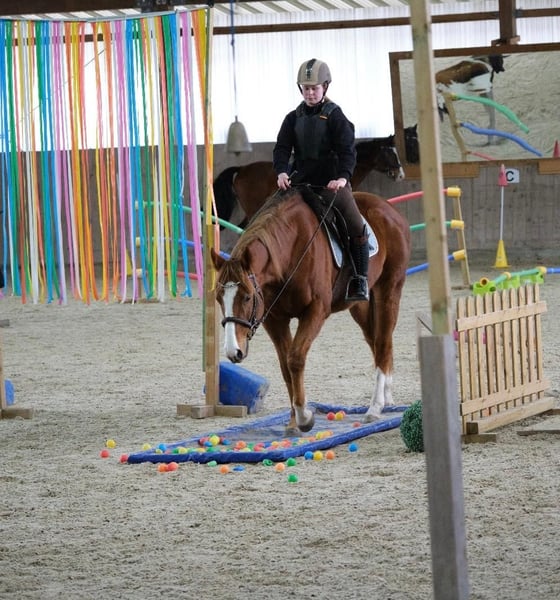 Wir suchen für unsere 8-jährige Vollblutstute Lucky Lou ein neues, liebevolles Zuhause. Lou ist ein ehemaliges Galopprennpferd (bis 3,5-jährig zwei Saisons gelaufen), die bei uns behutsam auf ihr Leben als Freizeitpferd vorbereitet wurde. Lou ist eine feine, sensible Stute, die im Umgang absolut unkompliziert und in der Herde eher rangniedrig ist. Sie ist keine "Schreckerin" und zeigt sich auch in neuen Situationen (z.B. bei Bodenarbeits-Parcours in der Ponyschule) sehr kooperativ und brav. Sie ist in allen drei Grundgangarten auf dem Platz und im Gelände reitbar. Lou ist kein klassisches Dressurpferd für die korrekte Anlehnung. Sie läuft am liebsten entspannt am längeren Zügel. Im Schritt und Trab ist sie auch von weniger versierten Reitern gut händelbar. Im Galopp kommt jedoch das Vollblut-Erbe durch und sie galoppiert gerne schneller. Hier braucht sie einen Reiter, der davor keine Angst hat und sie mit feiner Hand und ohne Ziehen zu begleiten weiß. Was wir uns wünschen: Wir suchen für Lou einen "Bestplatz" bei Menschen, die das Wesen von Vollblütern kennen und lieben. Ein Offenstall oder eine vergleichbare Haltungsform mit viel Bewegung ist für uns Grundvoraussetzung. Lou ist das ideale Pferd für Ausritte, Orientierungsritte oder als treue Begleiterin für die Bodenarbeit. Sie ist kein Kinderpferd für das eigenständige Reiten, macht aber geführt alles brav mit. Lou wird nur in beste Hände abgegeben. Wenn du ein feines Pferd mit dem gewissen "Go" suchst und ihr ein artgerechtes Leben bieten kannst, freuen wir uns sehr auf deine Nachricht.