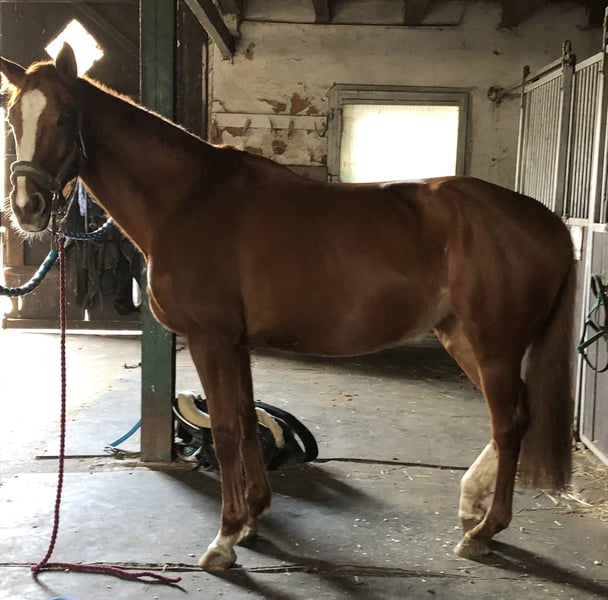For sale on behalf of the owner is the stunning 8-year-old mare "Pearl," approximately 16.1 hh. Pearl is being offered due to lack of time. She has so far been used only for leisure riding and light work. She is familiar with lunging, the round pen, and under saddle in all three gaits. Pearl is barefoot and well-behaved when trimmed. She is motivated and has a good go, so she is not suitable for beginners.